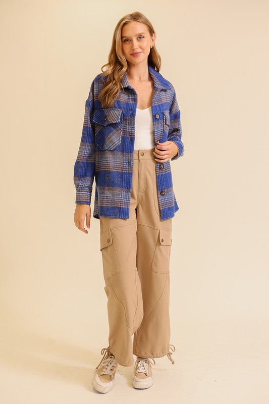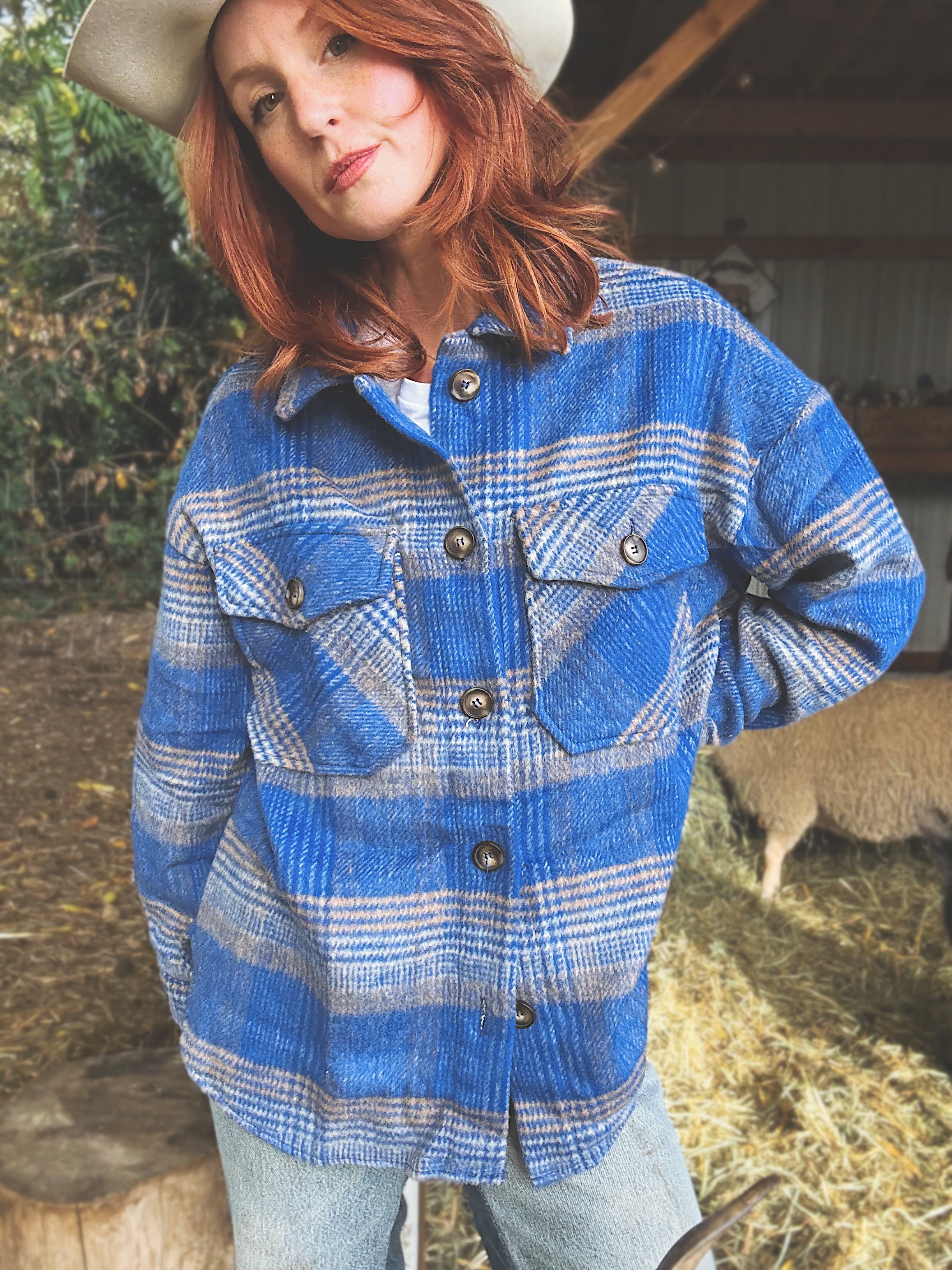 The Washed Up fuzzy flannel shacked is the easiest piece to add to any outfit. It is so soft and with a slight ombre fade, you have the vintage look and feel.