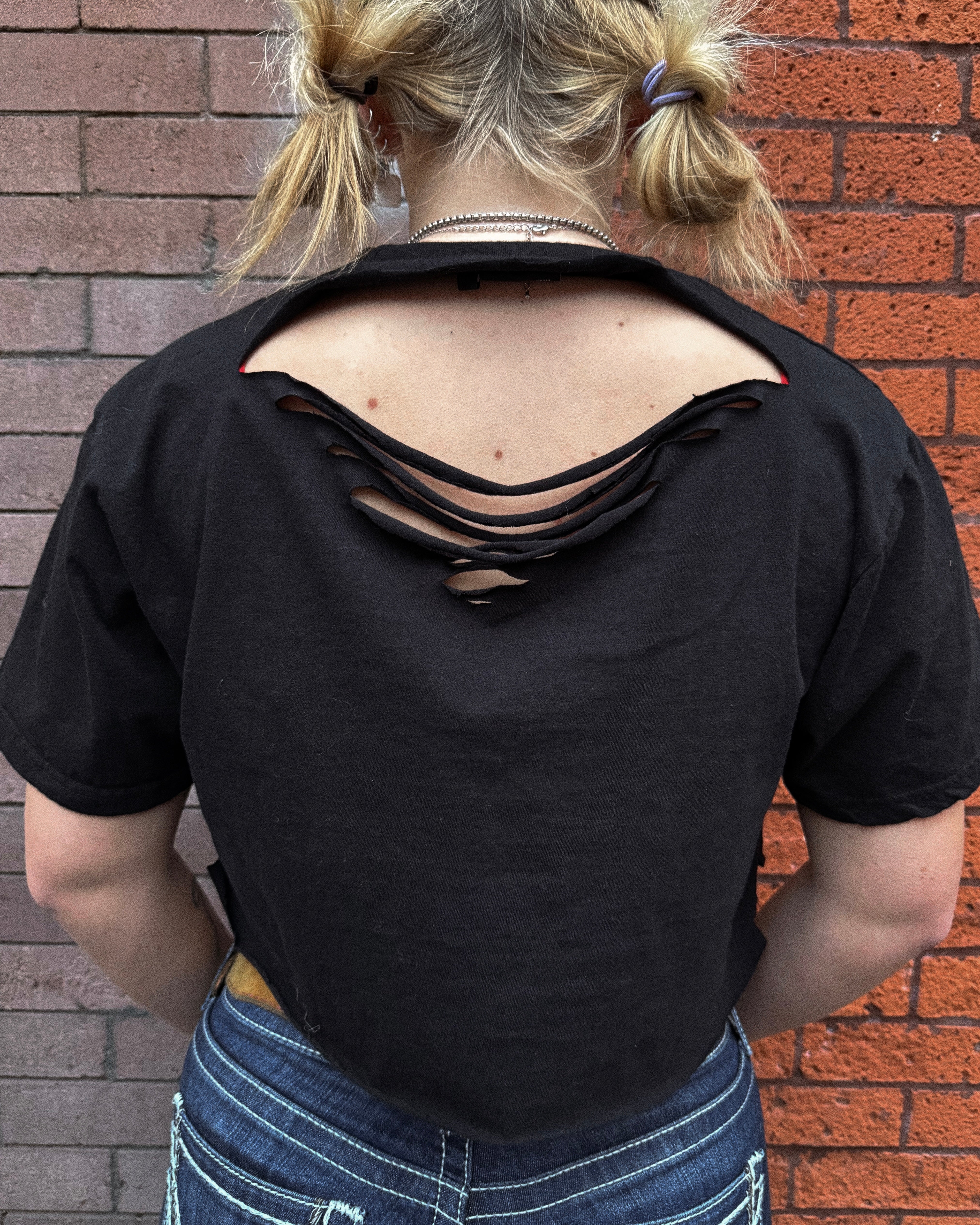 All Items are done in house. Our Chop Shop features one of a kind distressed, bleached, and dyed products done by one of our very own team members!