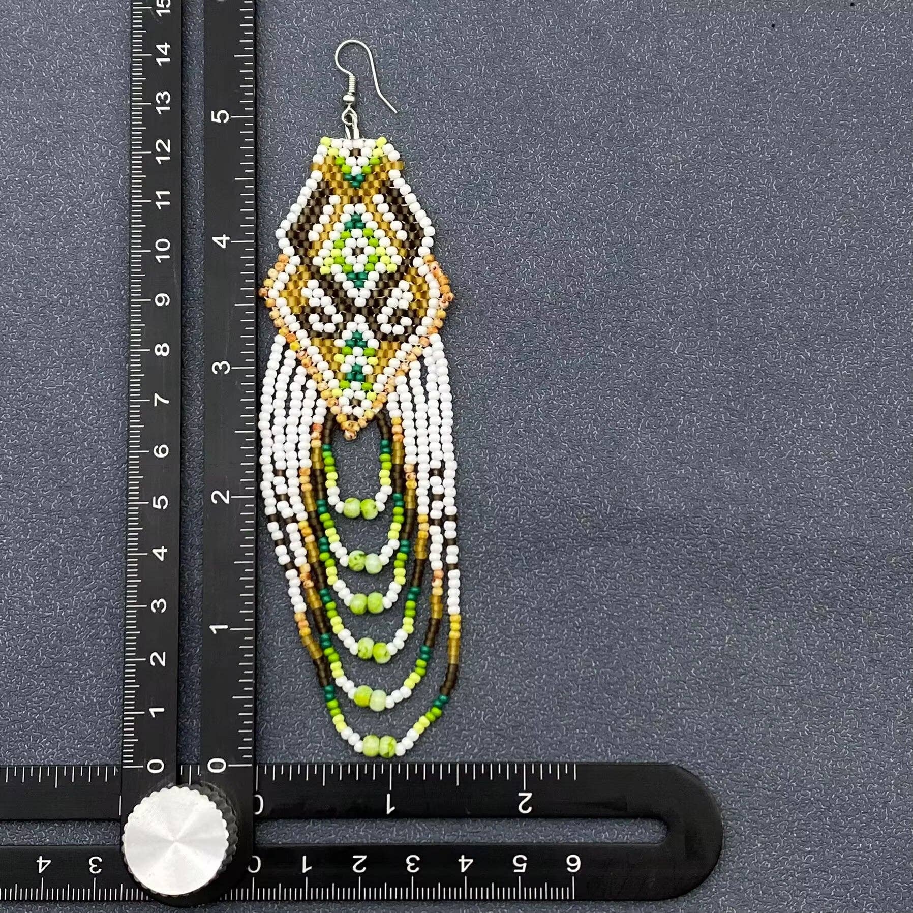 Bohemian Hand-woven Seed Beads Long Fringe Earrings