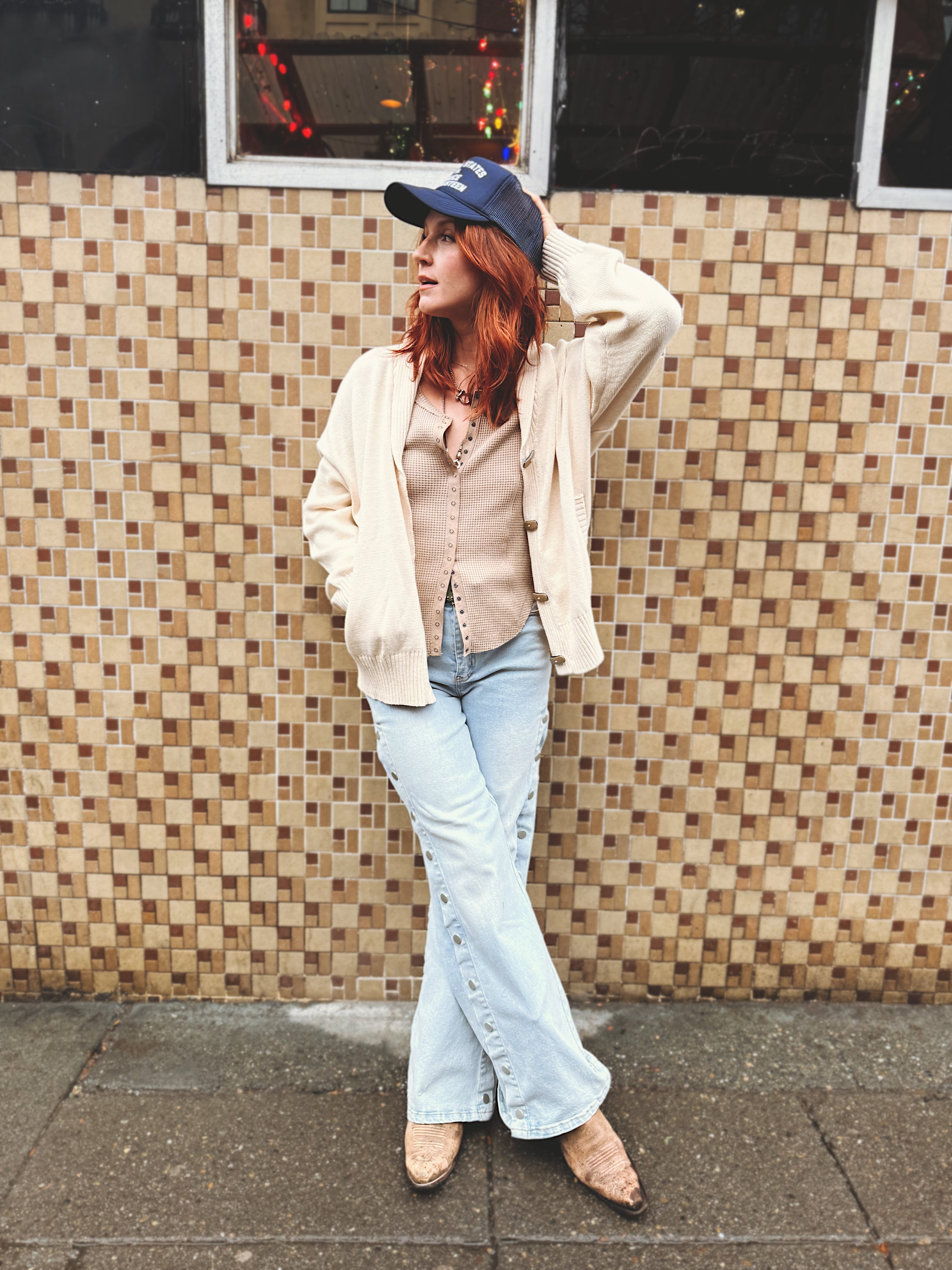 She's The One Thermal Top has a full snap up front and scoop neck. This long sleeve top is incredibly soft and a staple layered under a sweater or jacket.