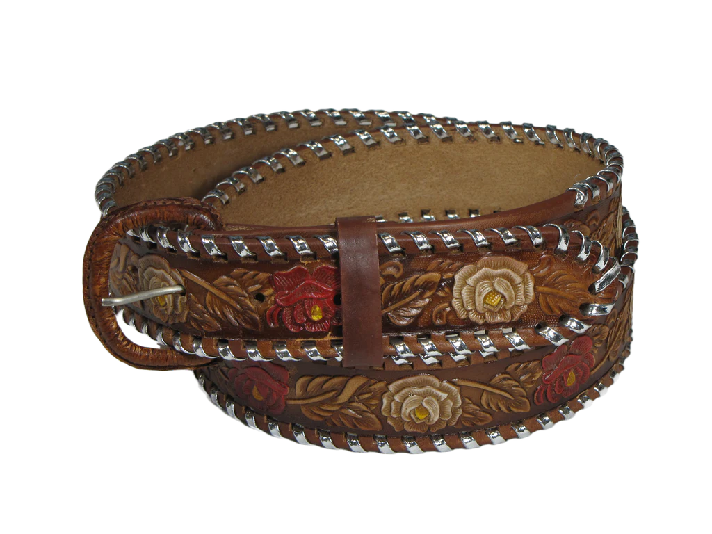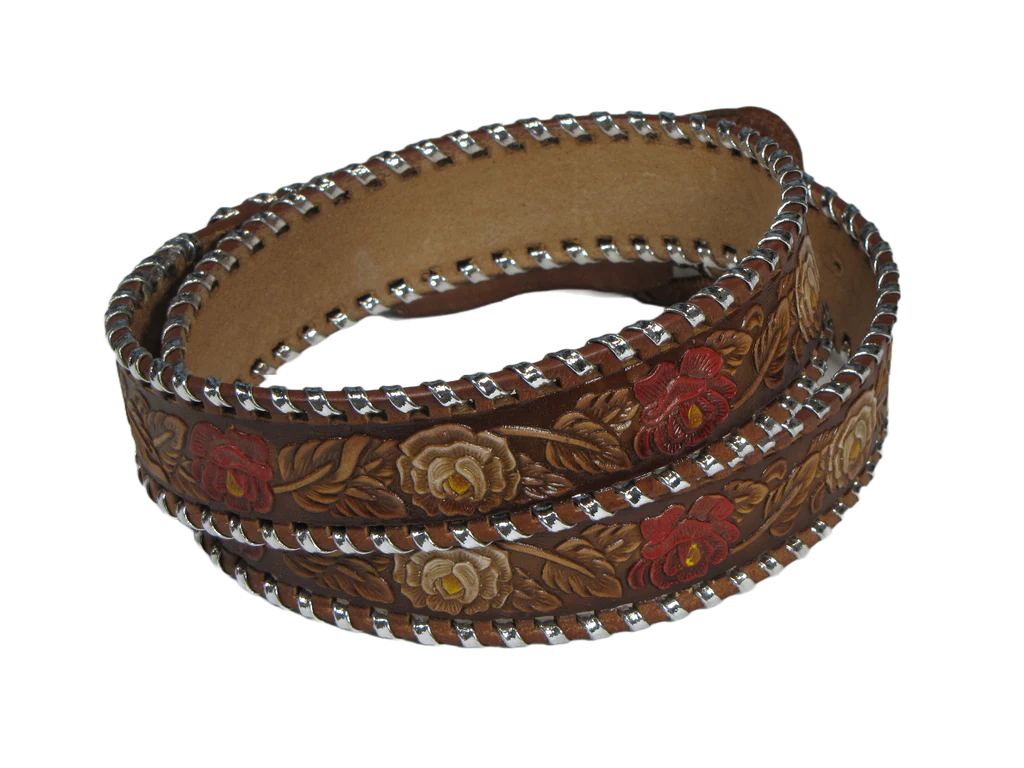 2 Dozen Roses Tooled Leather 1 1/2" Belt