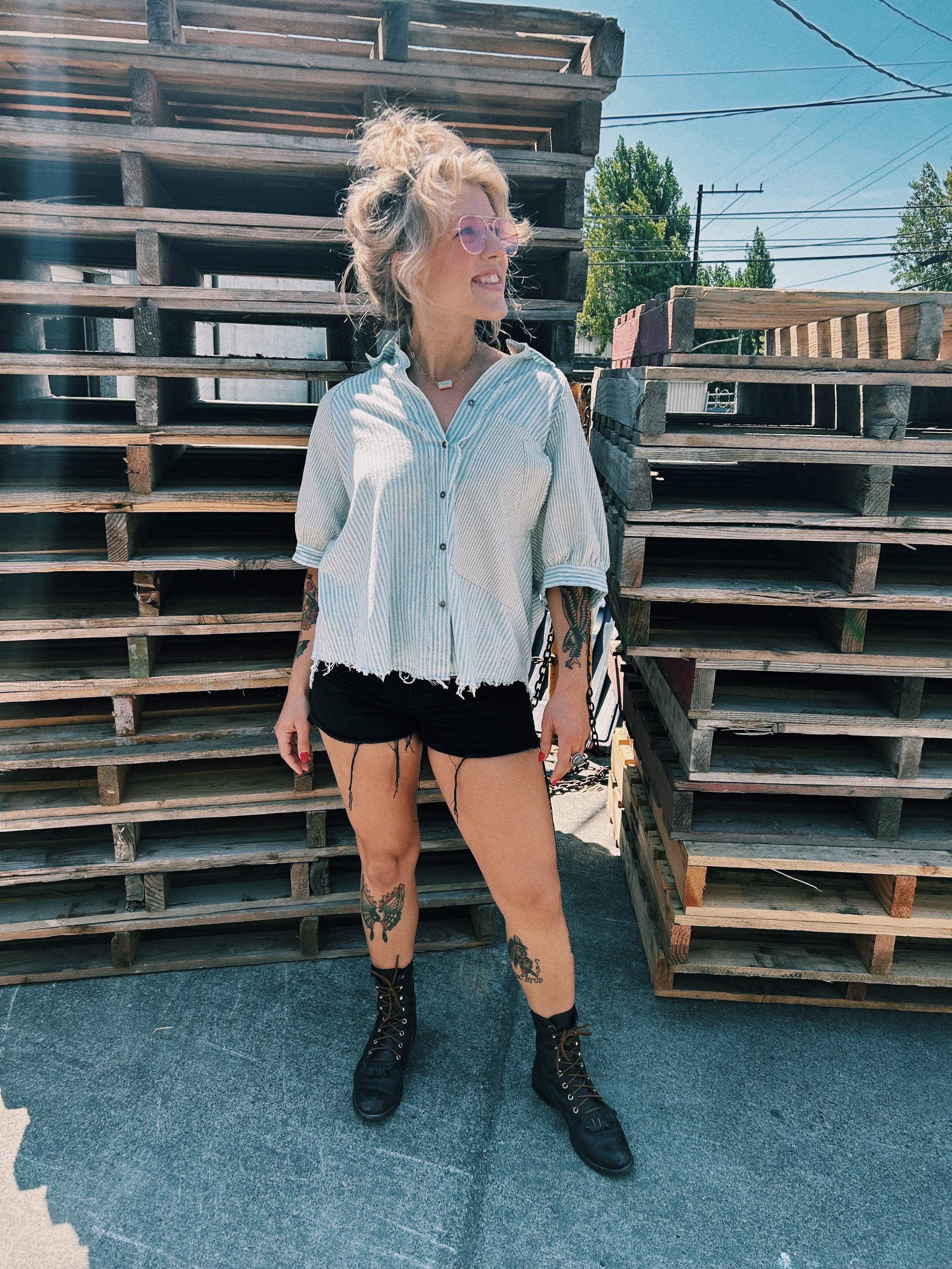 This button-up blouse with a pin tuck detailing at the neck will become your go-to piece for any occasion. Loose, lightweight and chic, it is a closet staple.