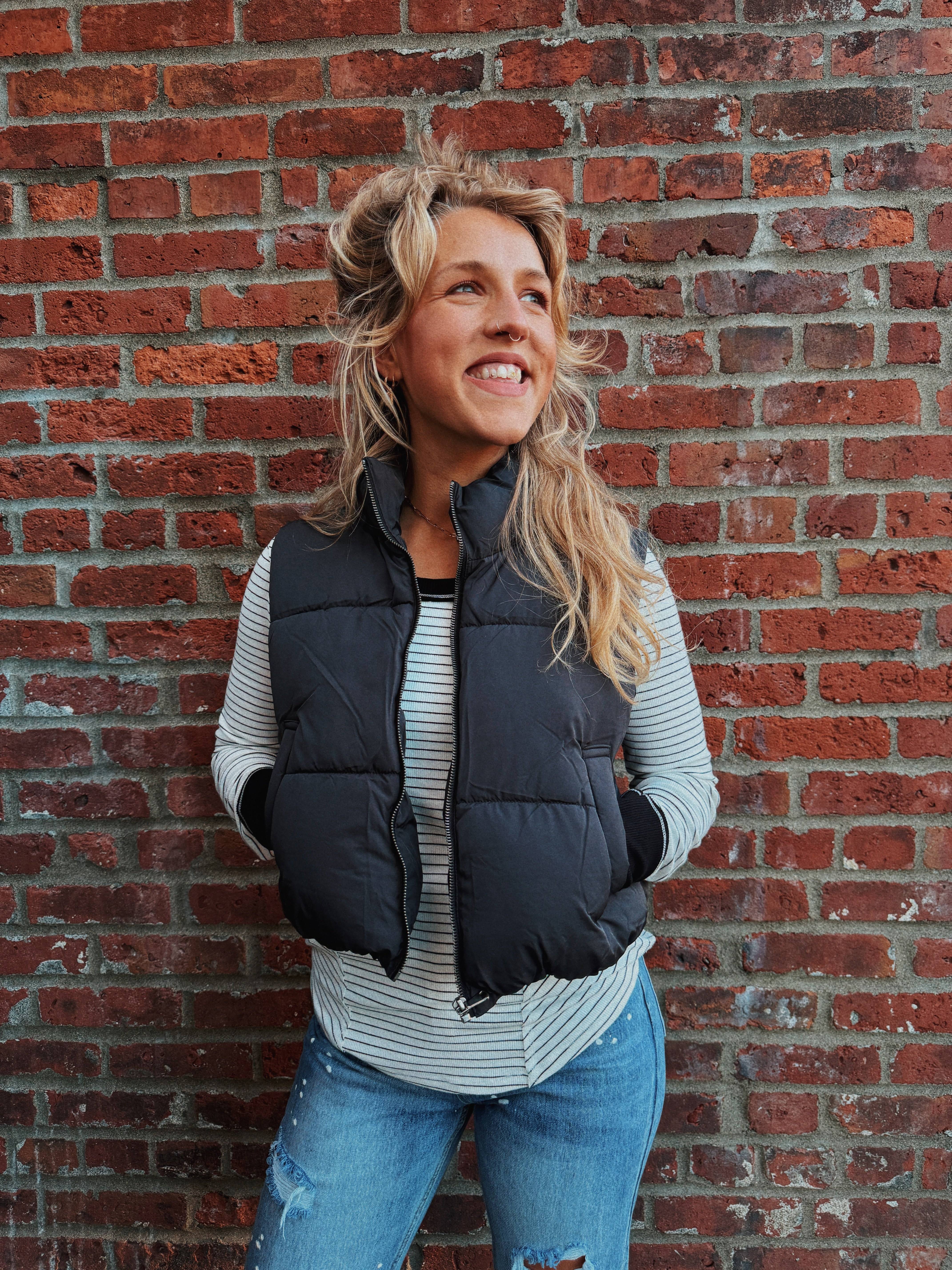 This cropped puffer vest is a warm, flattering winter essential that adapts beautifully to various temperatures. Its versatile design makes it easy to style in countless ways, ensuring it remains a timeless transition piece that complements evolving trends for years. The quality is exceptional—smooth, comfortable, and warm yet breathable—making it perfect for layering.