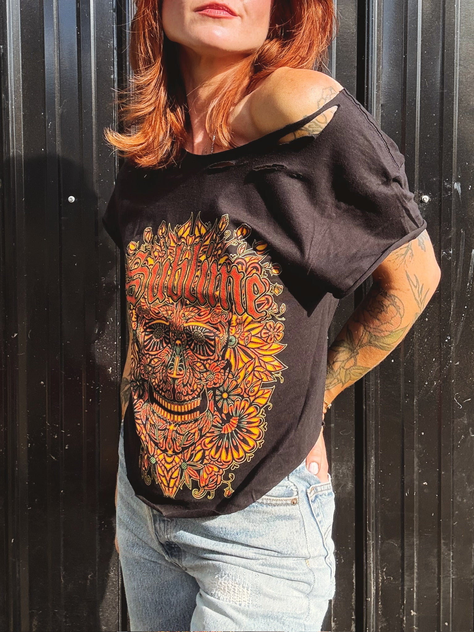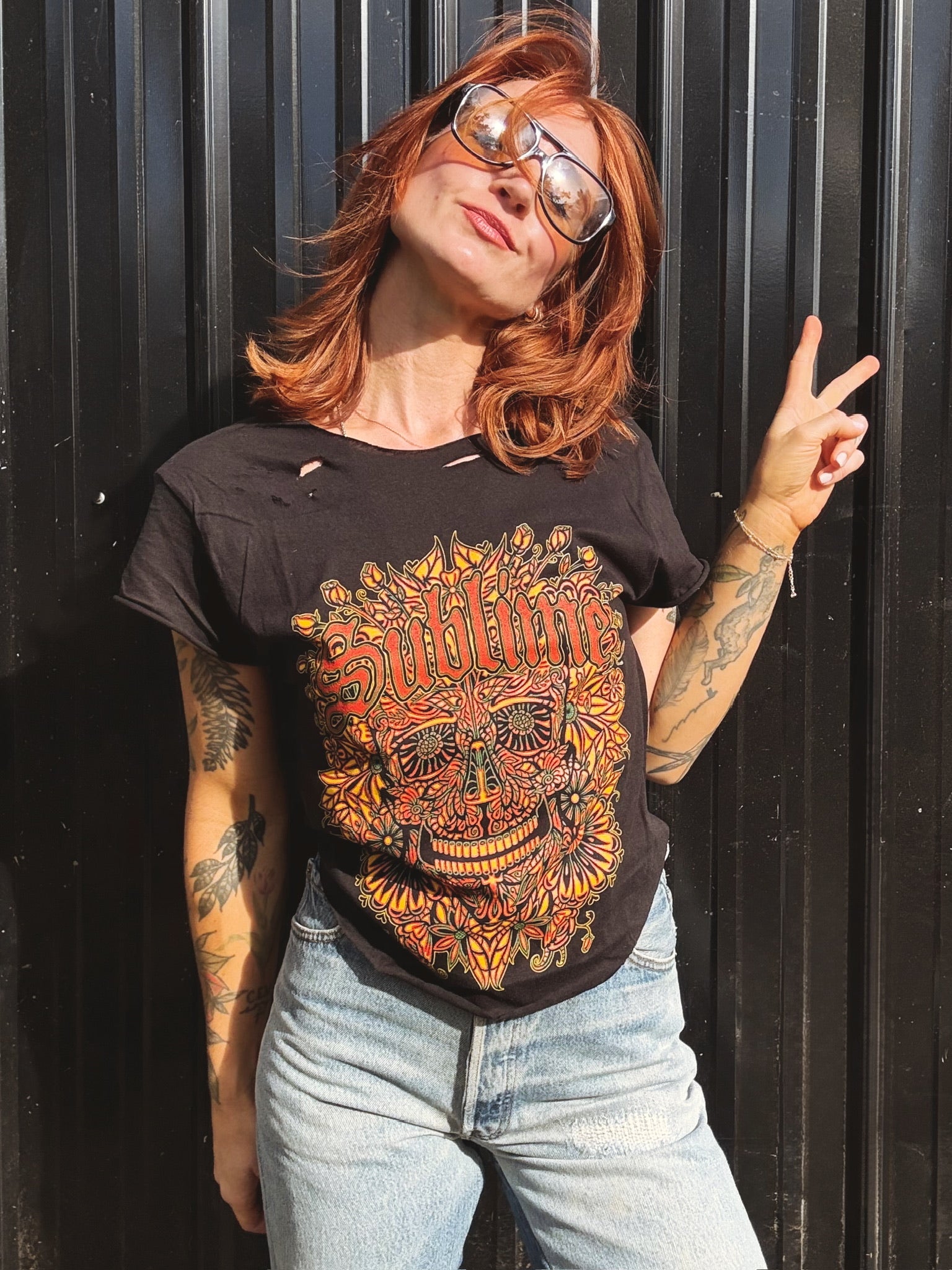 We took men’s band tees and gave them an edge. We hand-chopped these band tees to flatter a woman’s style. Gold Dogs is your home for custom chopped band tees.