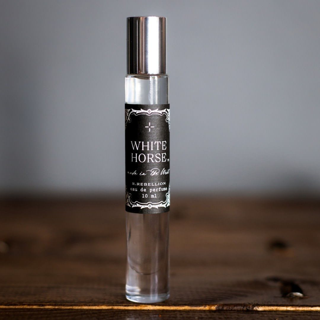 Notes of: magnolia, salty sea, rainforest, sandalwood, creamy amber, smoke, leather Letterpress Printed Box 10 ml Mixed by Hand Fine Fragrance & MCT Oil Paraben & Phthalate Free Embrace your inner wanderer with a fragrance that captures the timeless allure of the cowboy on a white horse. Inspired by the rugged beauty of the untamed West, this scent invites you to chase your dreams beneath endless skies. Top Notes: Magnolia and sea breeze blend with sunrise at the shoreline. Heart Notes: Sandalwood and creamy amber evoke hidden trails in the rainforest. Base Notes: Smoke and leather transport you to campfires beneath starry skies. White Horse embodies courage, chivalry, and the enduring bond between rider and steed. Whether you're a romantic or an adventurer, let this fragrance be your companion on the road to discovery. Indulge in the nostalgia of the open range and embrace the romance of the untamed West. Saddle up and let your senses soar with White Horse.