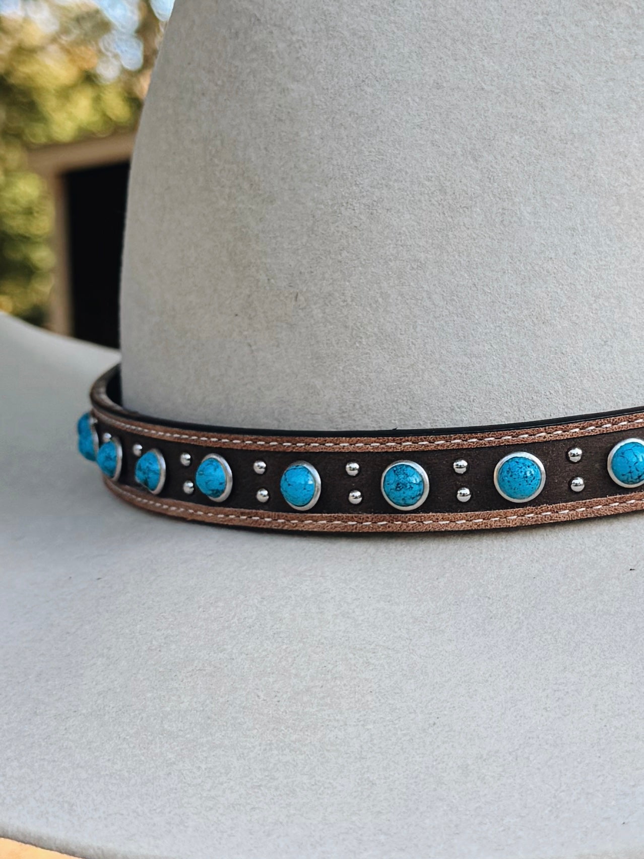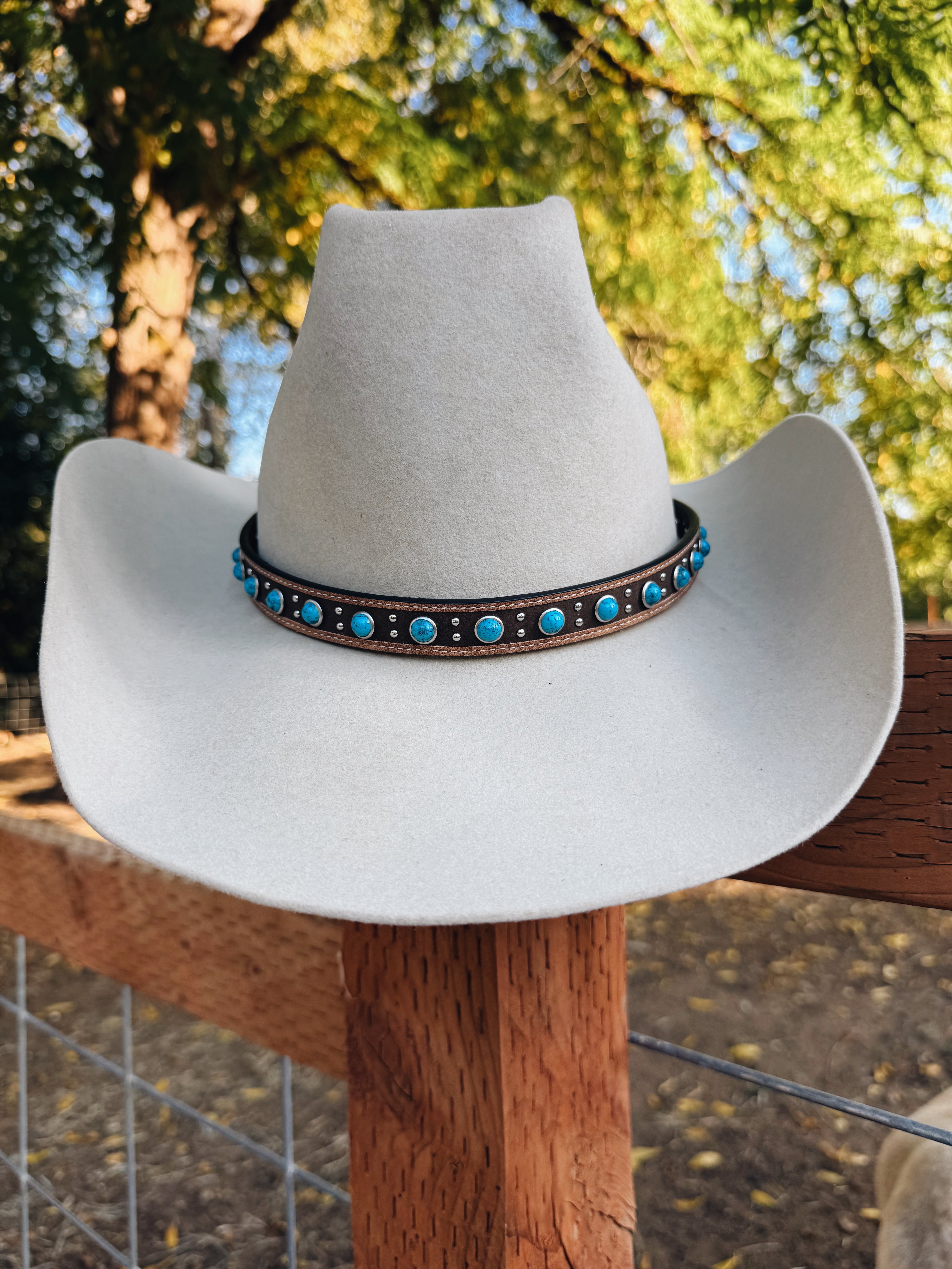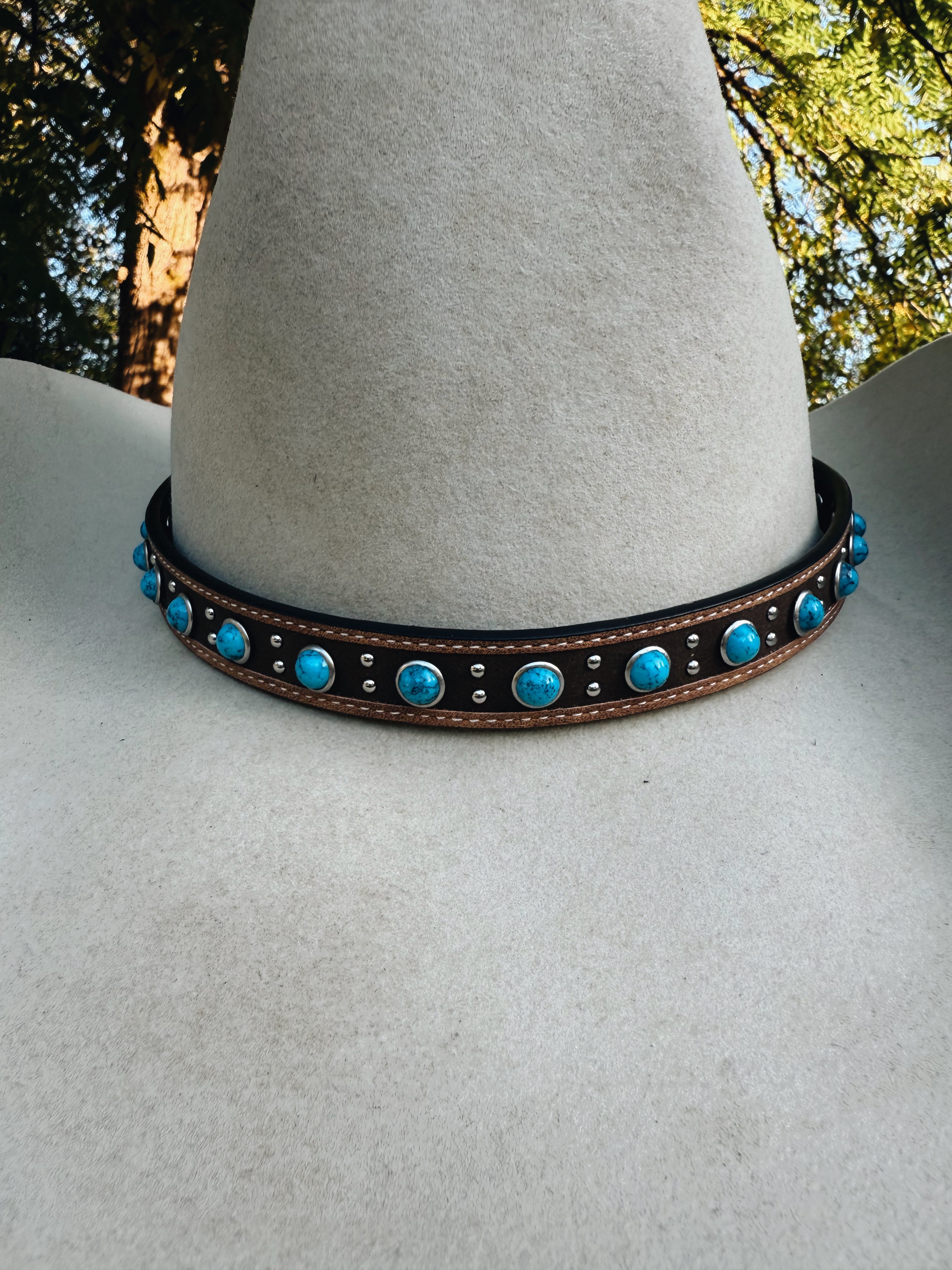 Genuine Leather Hat Band With Turquoise Stones