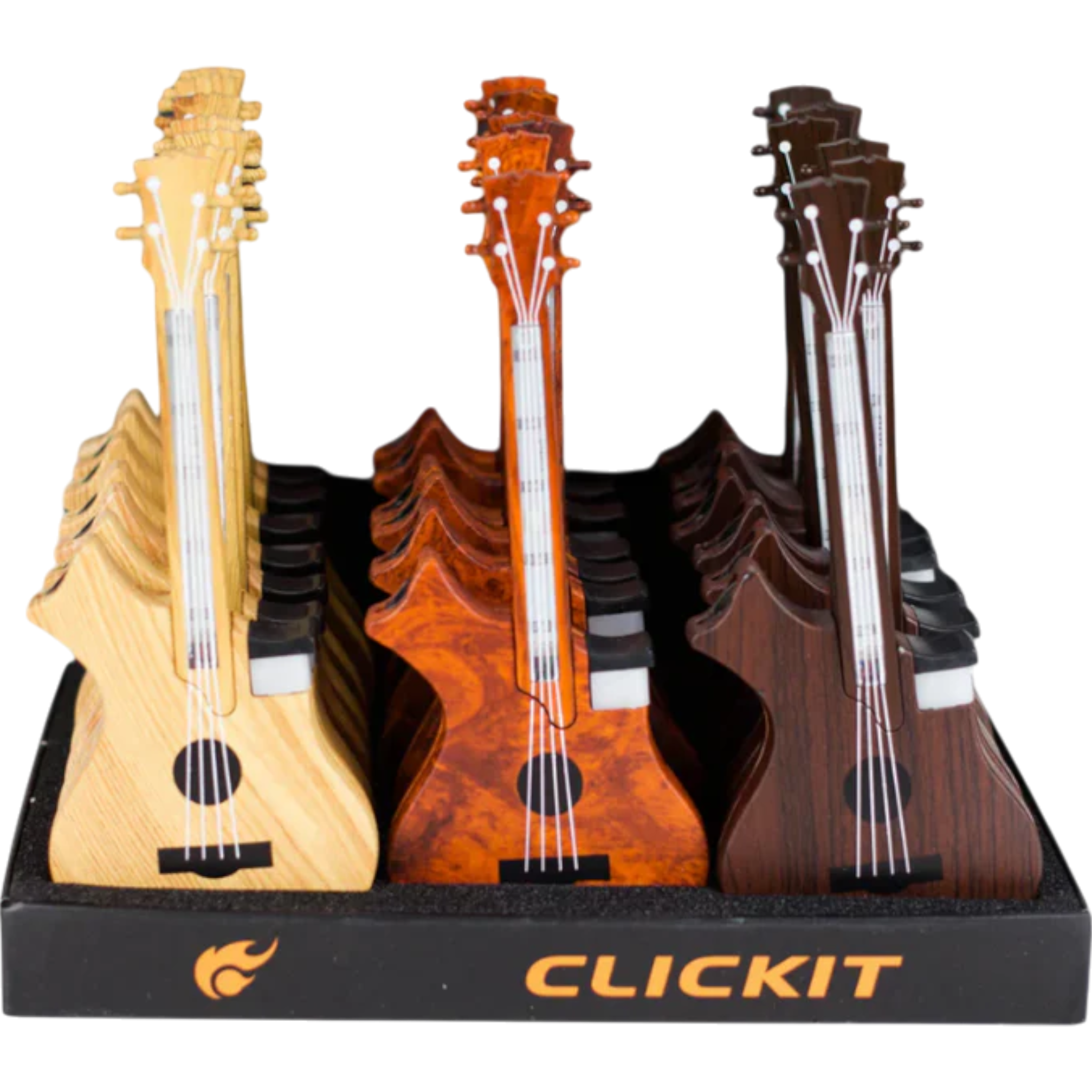 The Clickit Torch Lighter Guitar w/ light is a high-quality torch lighter. With its precise flame and durable design, it offers the perfect combination of style and functionality. Perfect for lighting cigars, candles, and more.