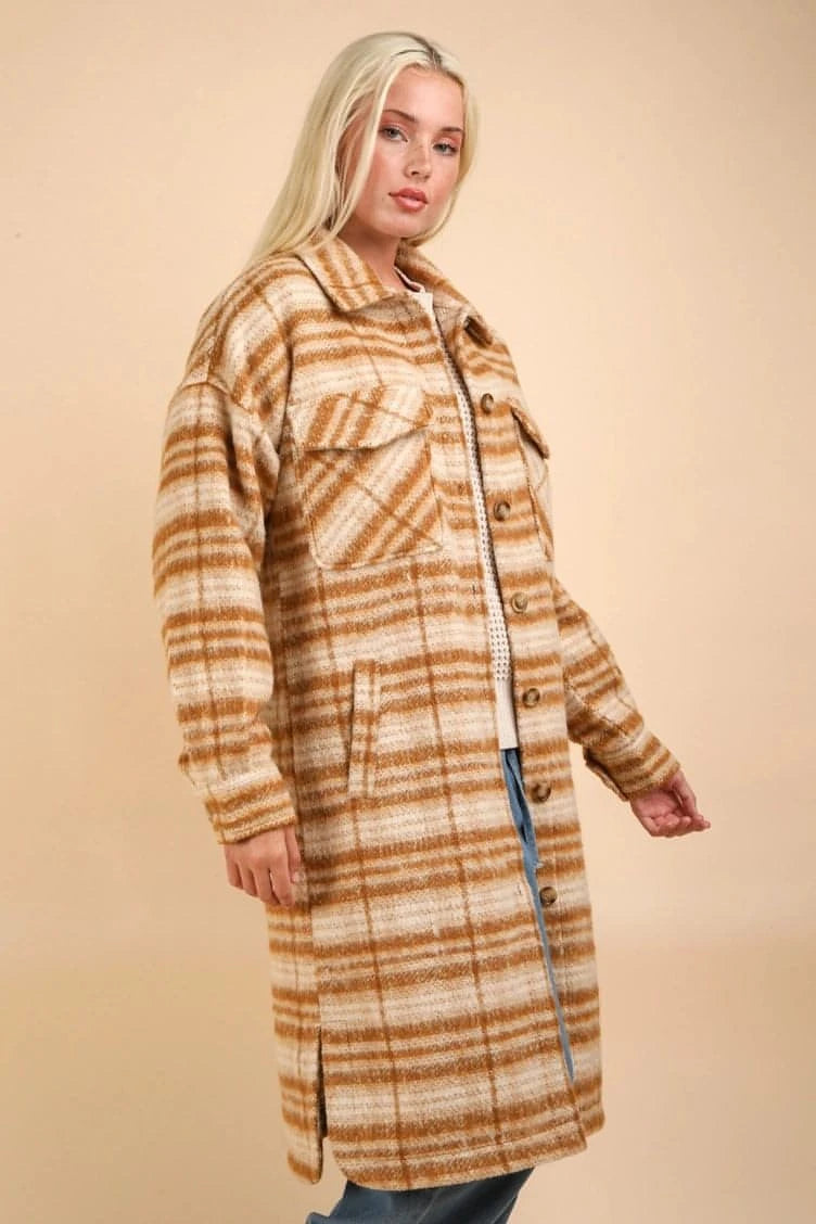 Elevate your outerwear with our Roxy Plaid Duster in Rust, infuse your wardrobe with a touch of the untamed West.