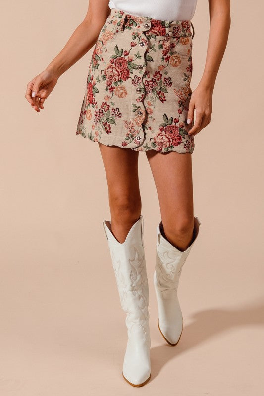 Letting Me Down Jacquard Tapestry Mini Skirt