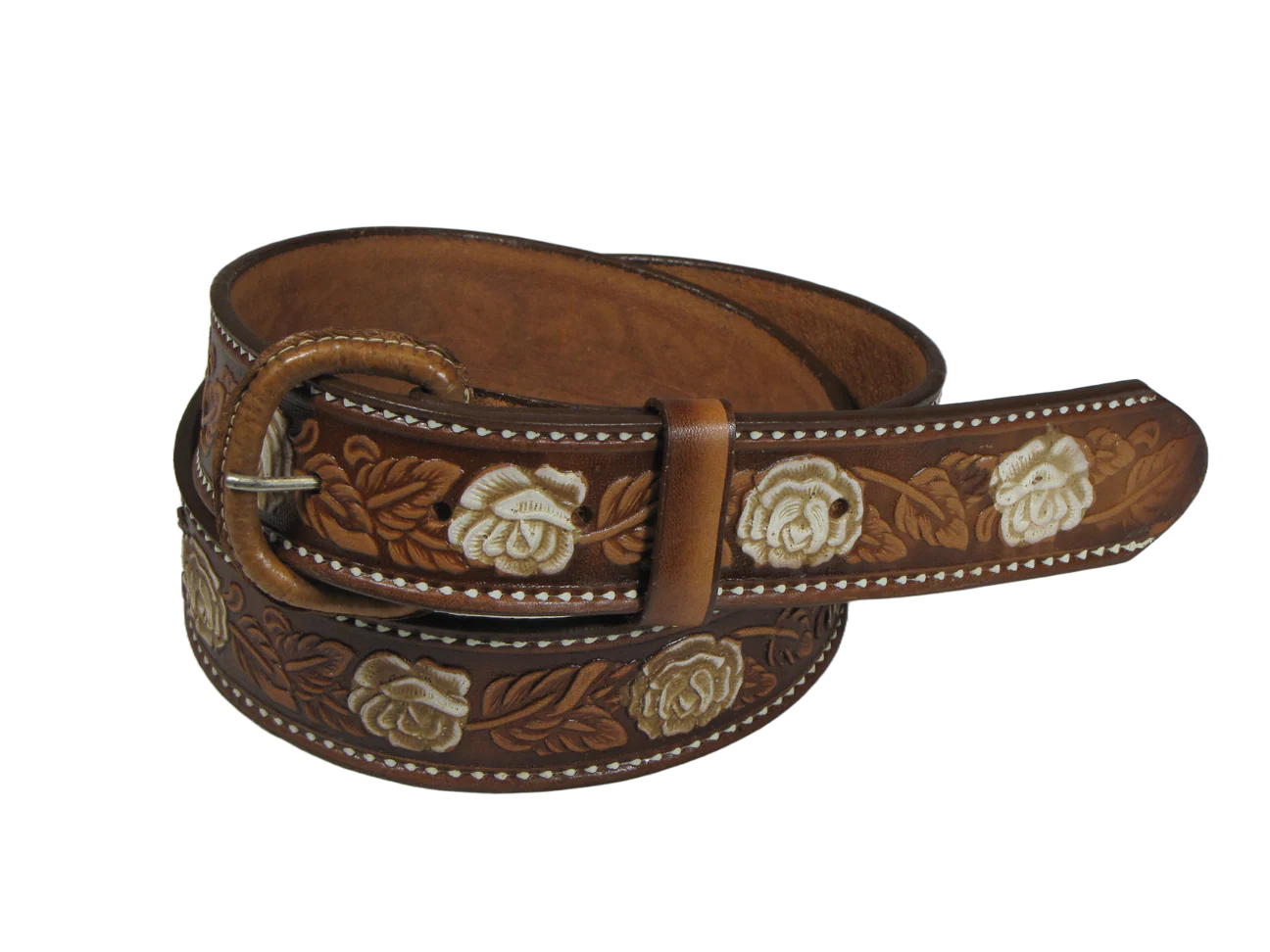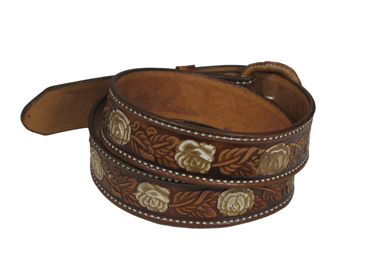 This genuine leather belt is Shenandoah approved to represent their classic song Two Dozen Roses. Proudly made in the USA. Has removable buckle, so you can add your own belt buckle to customize your look.