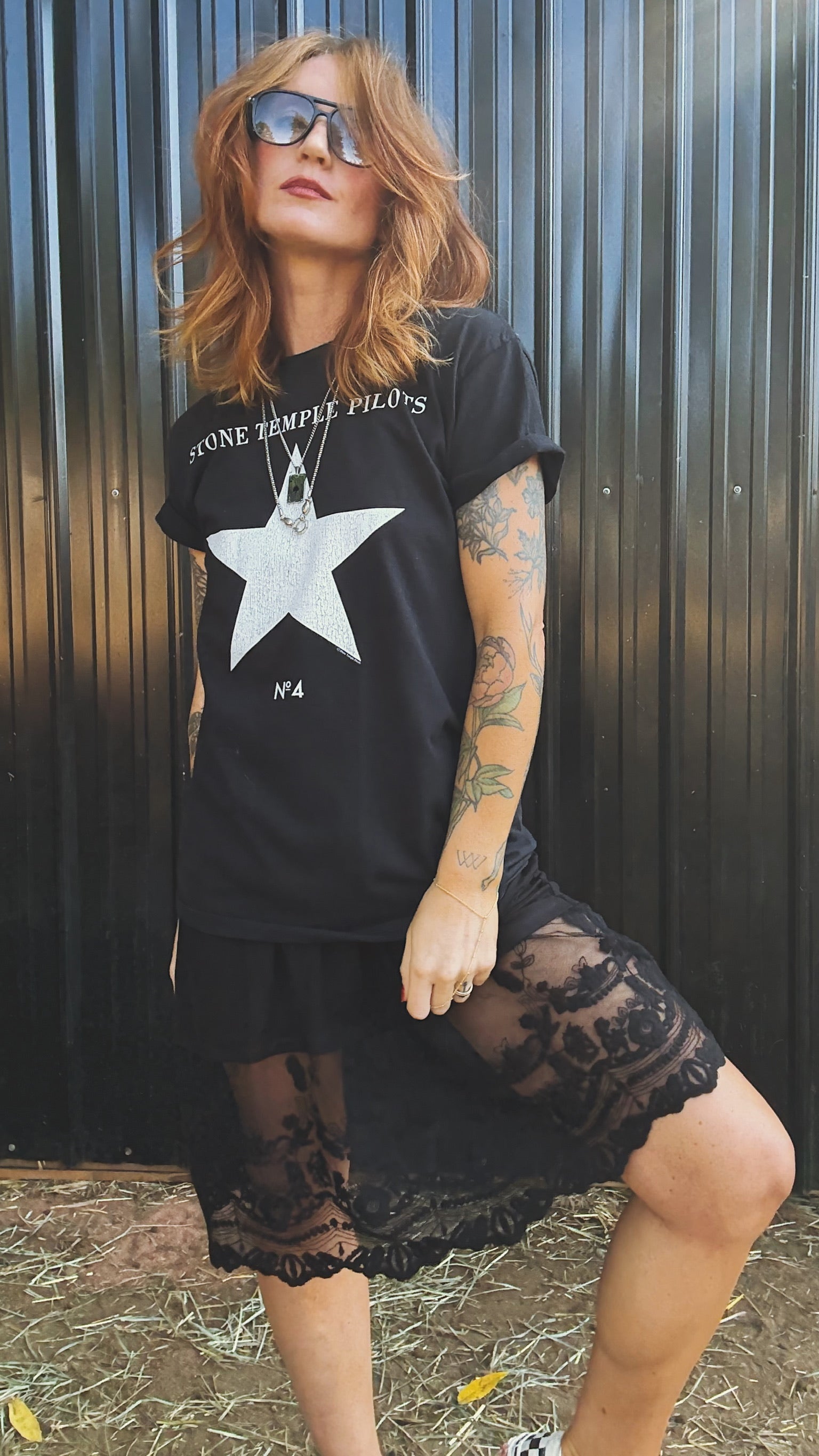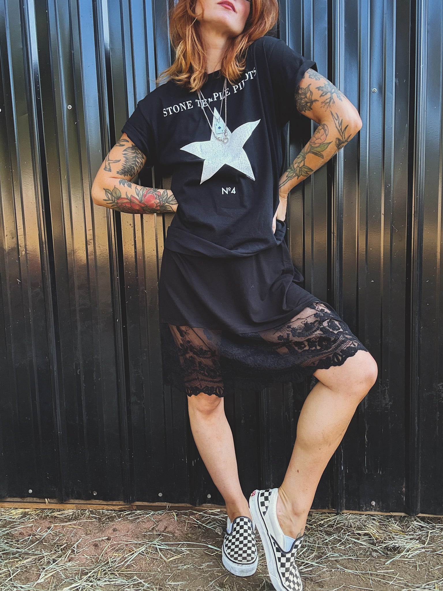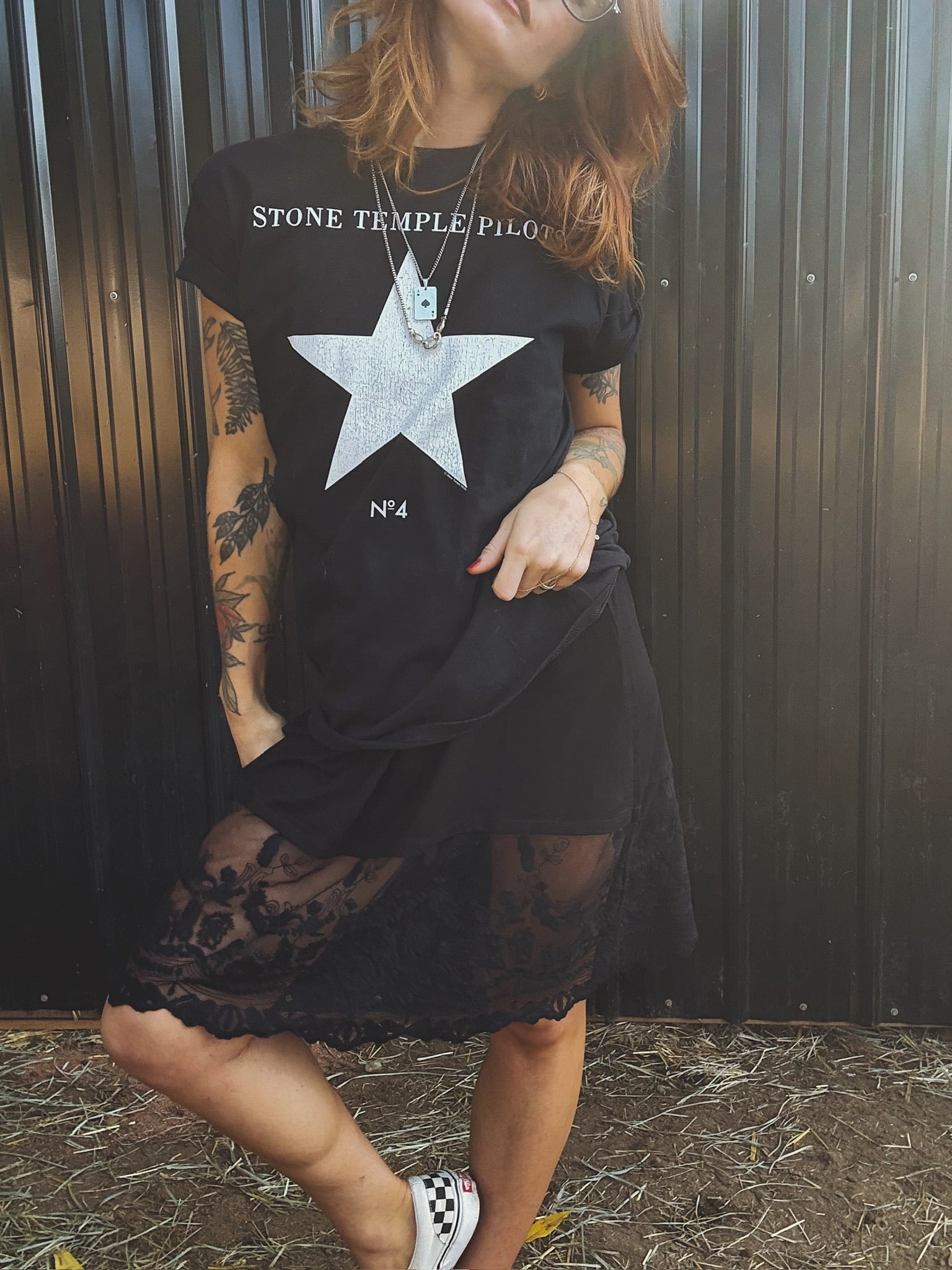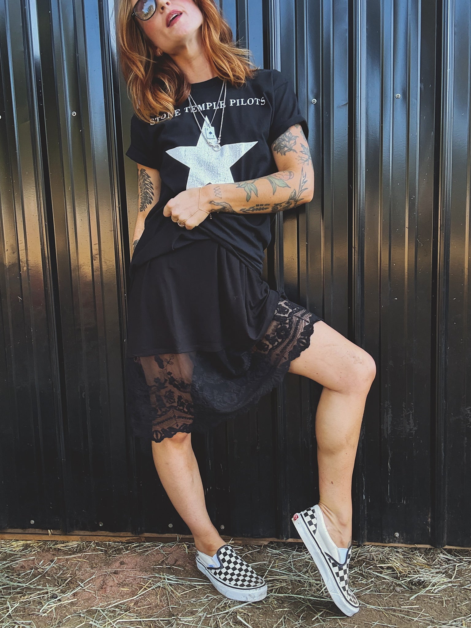 Fall is for layering. This is the perfect addition to any oversized band tee. Add a some sweet to your rock n roll.