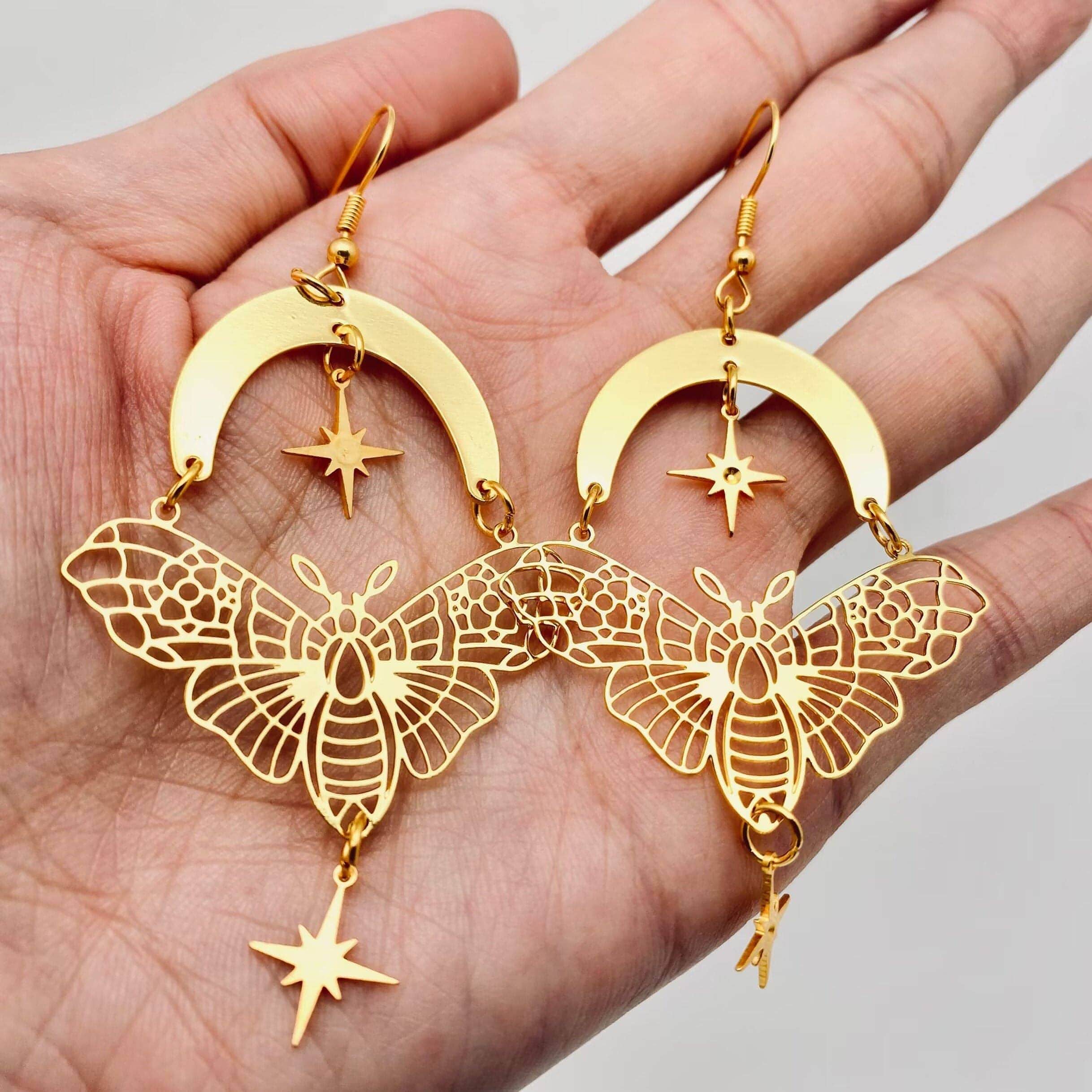 These Moth Moon & Star Earrings are unique, light-weight and perfect for any festival.