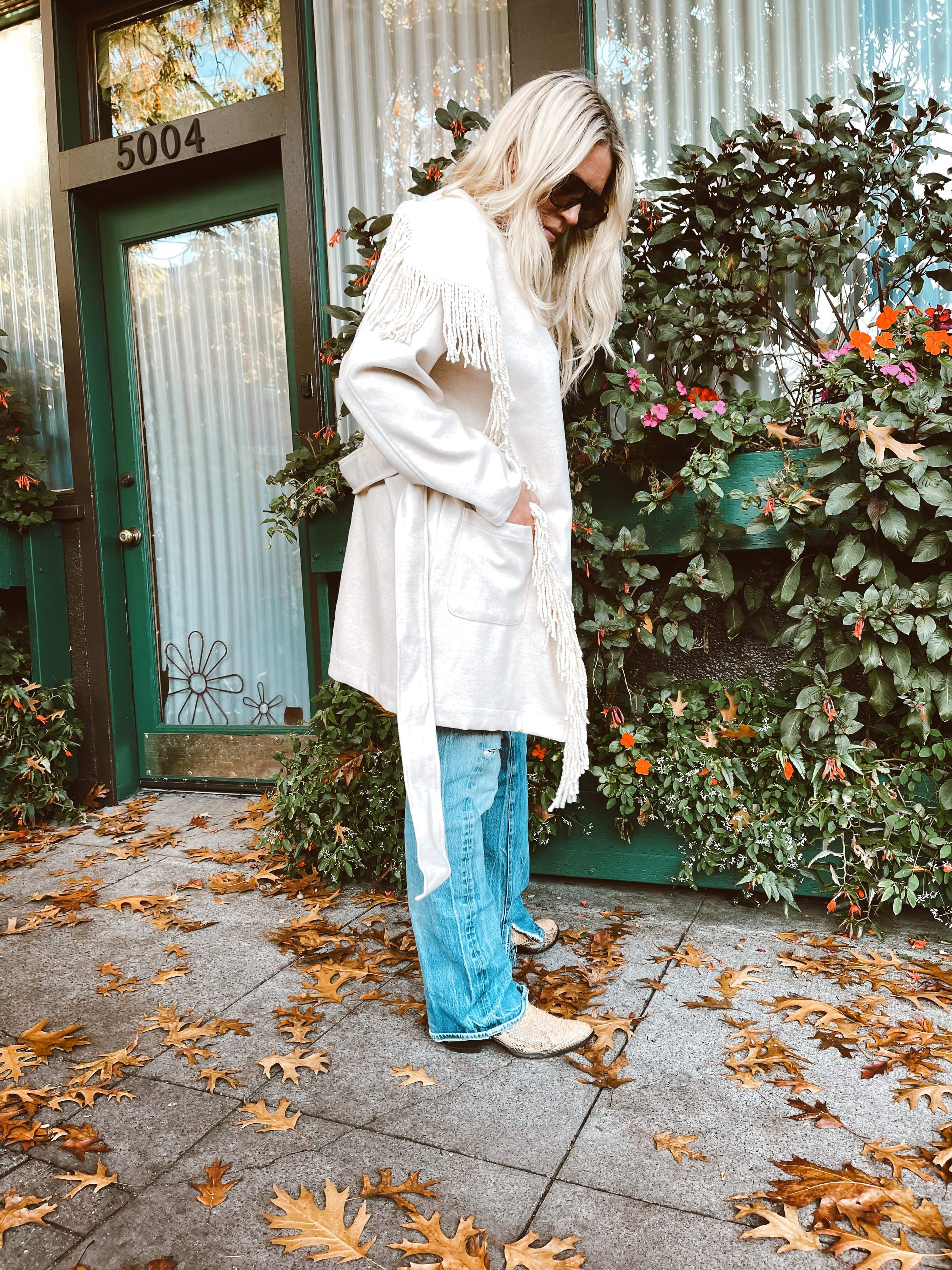 This guaranteed-cozy wrap is the perfect way to show off your unique fashion sense. Featuring a dramatic fringe detail with large, soft strands, it’s the one-of-a-kind piece your wardrobe needs!