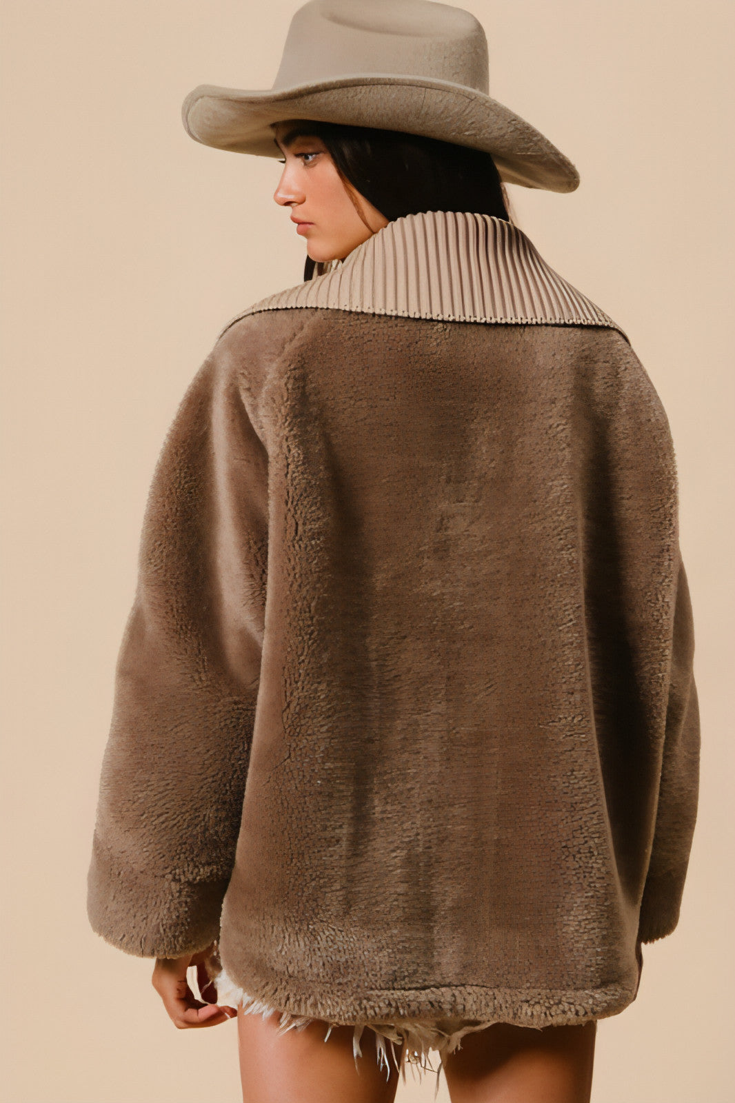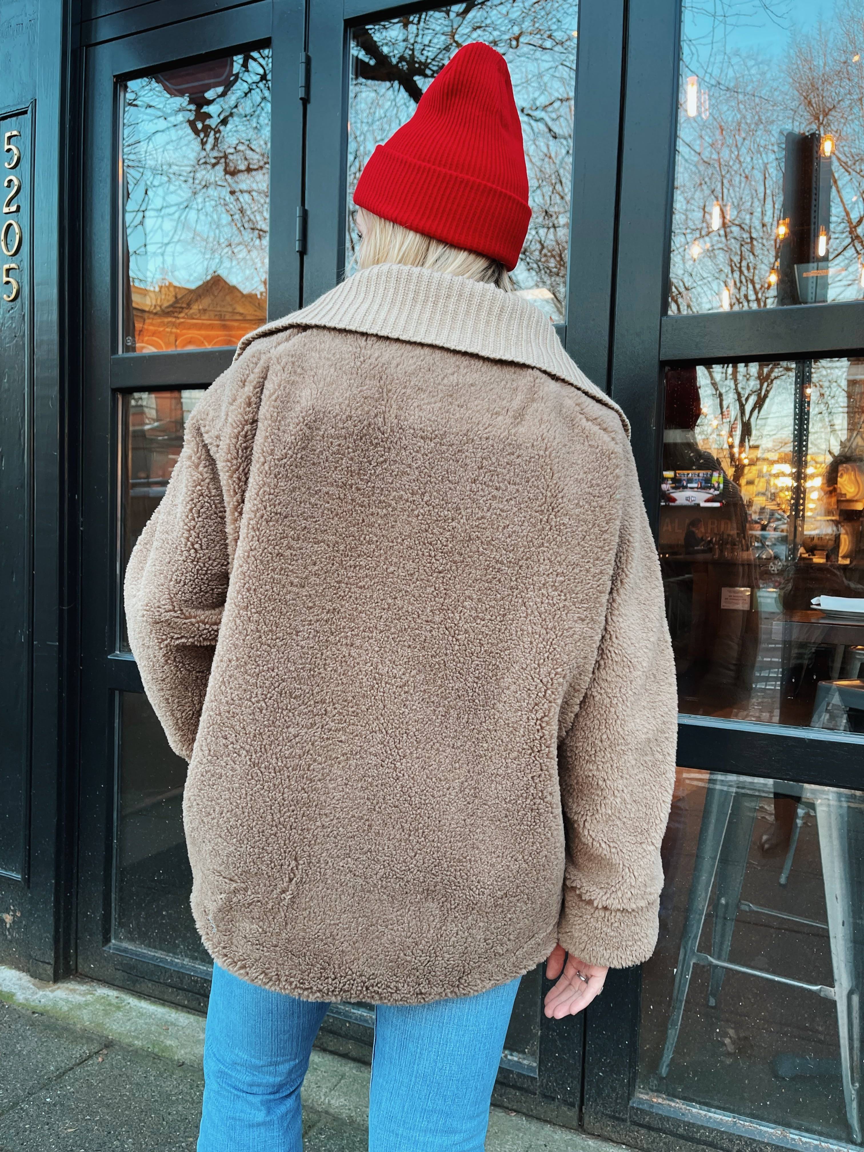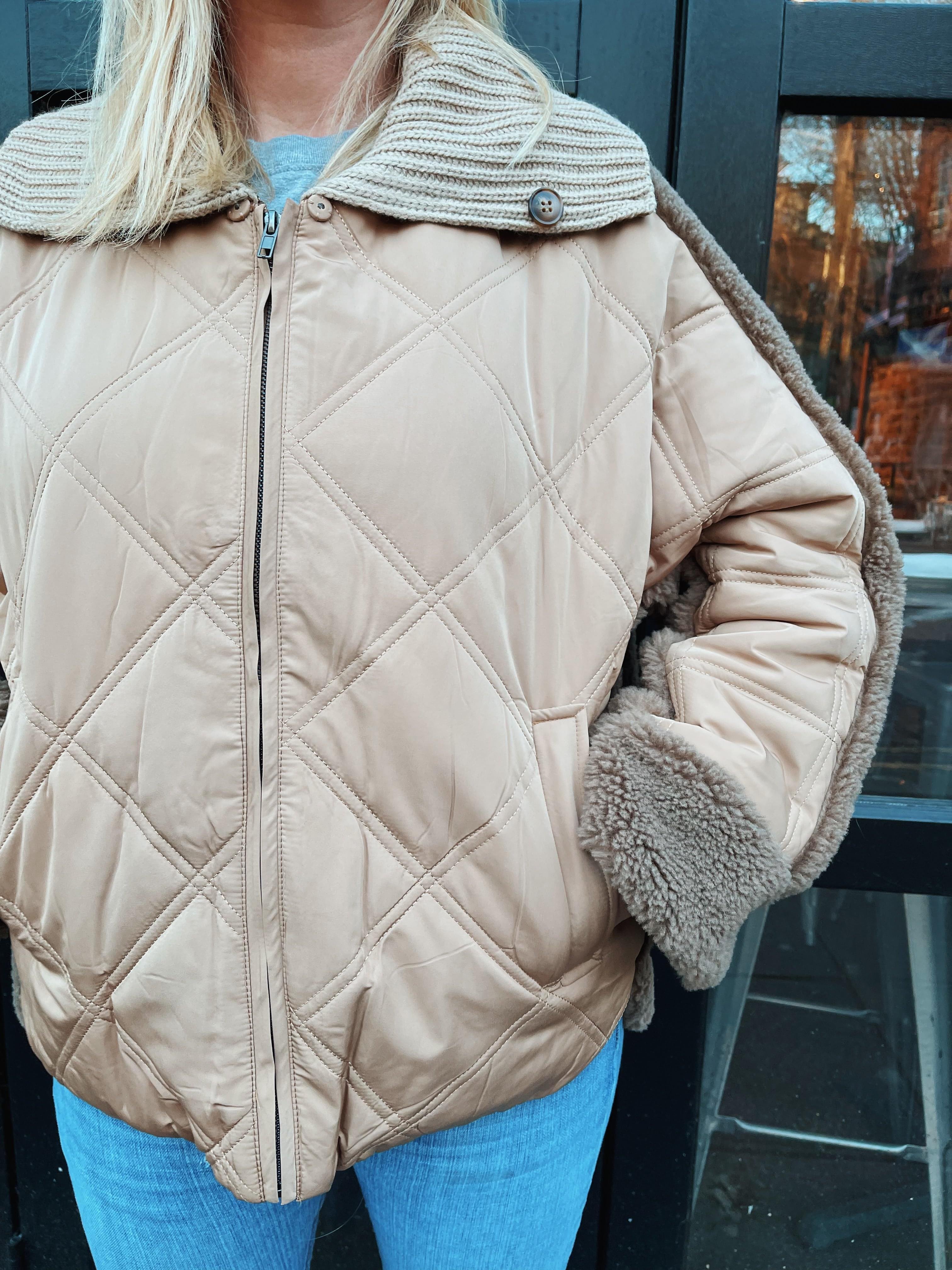 Stay warm and stylish with this oversized quilt and sherpa jacket with an oversized fit and collar.