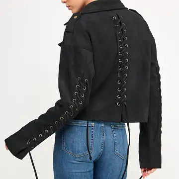 Cropped faux suede with rockstar energy. The Stevens jacket keeps it smooth, sharp, and a little rebellious and is a perfect piece for your fall wardrobe.