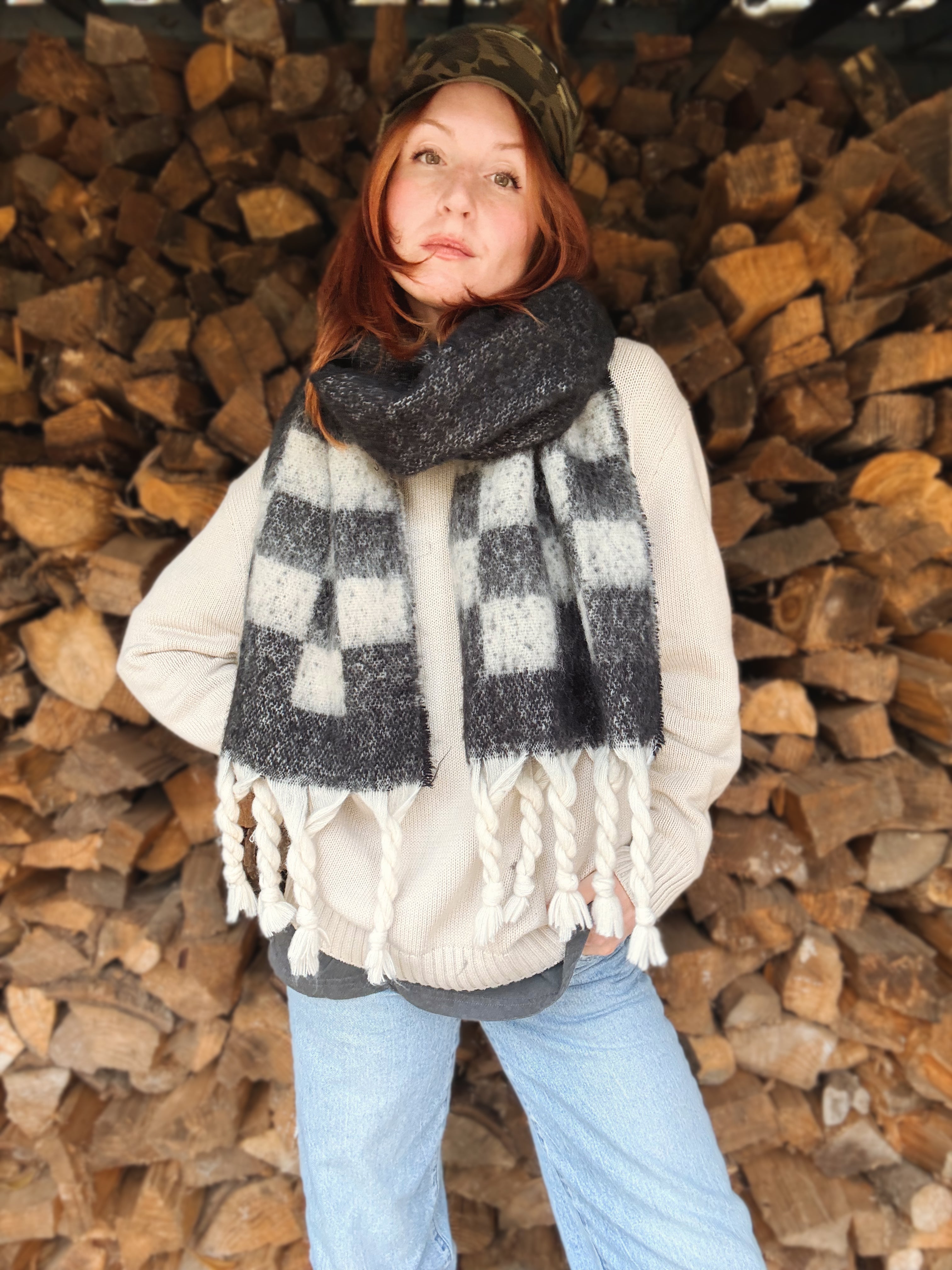 Wrap yourself in comfort and style with this chunky plaid oversized scarf that is a perfect staple for colder seasons.