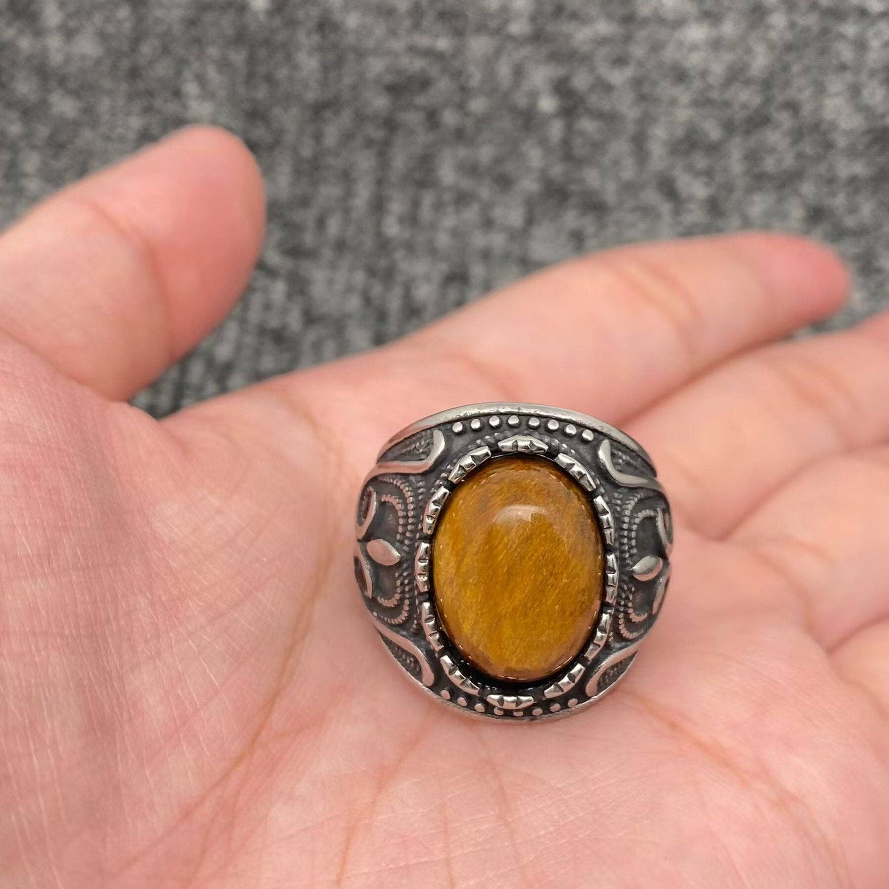 Tiger's Eye Stainless Steel Biker Ring