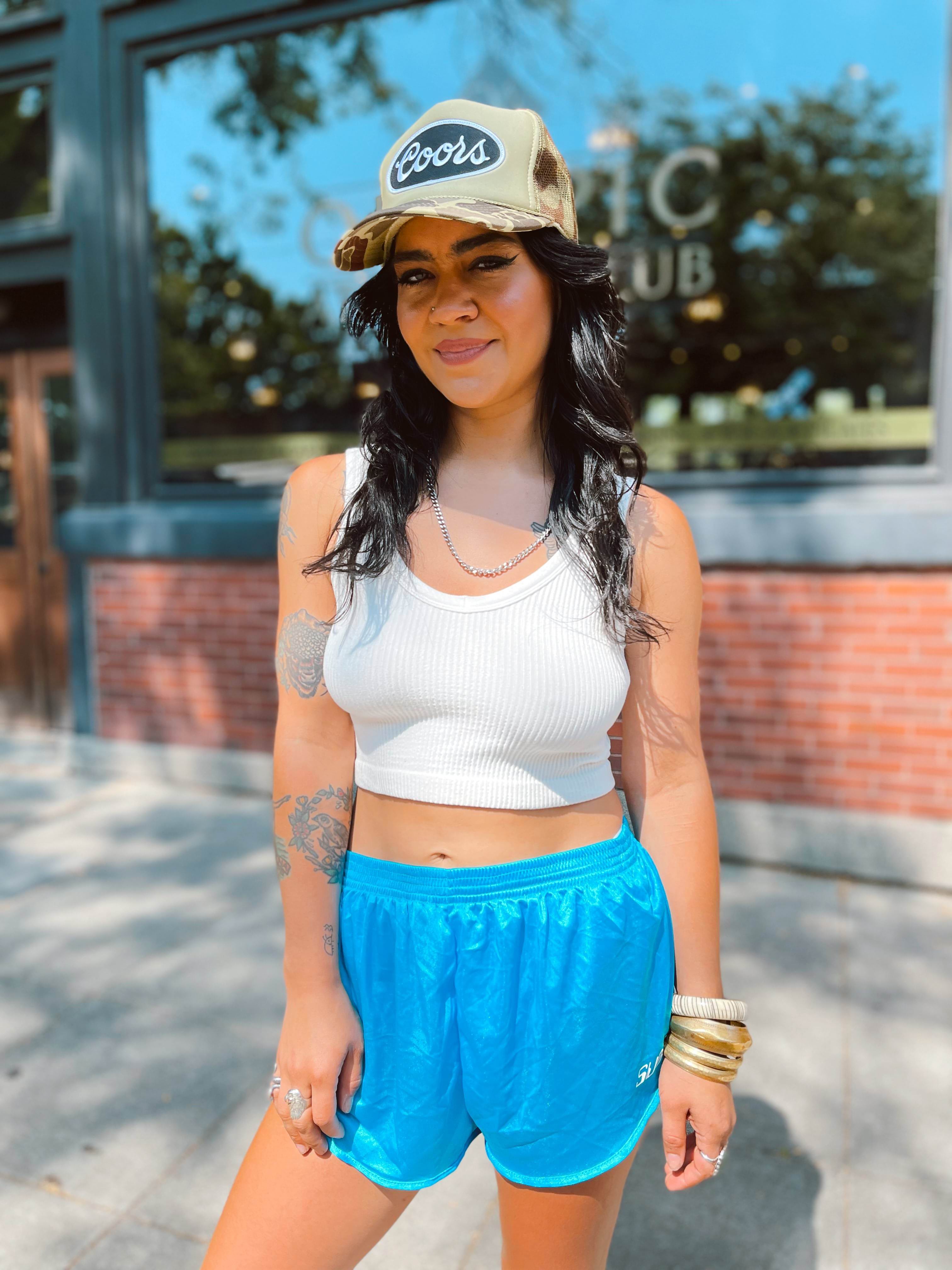 Classic retro neon running shorts with a split side hem. Lined with shorts for extra comfort. Perfect for any runner or casual athleisure